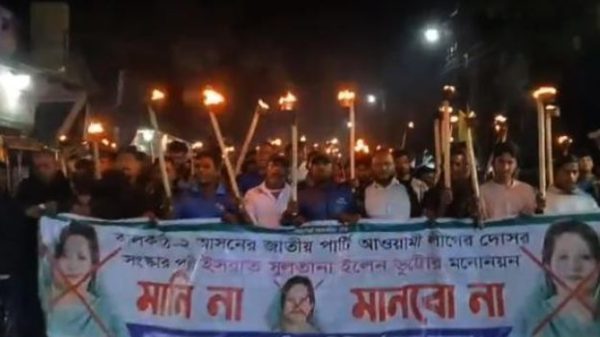 ঝালকাঠি প্রতিনিধি ::: ‘ইলেন ভুট্টোর মনোনয়ন মানি না মানব না বয়কট বয়কট, আওয়ামী লীগের গুন্ডারা রাজপথে নামিস না পিঠের চামড়া থাকবে না, ইলেন ভুট্টোর গুন্ডারা হুশিয়ার সাবধান, নান্নু ভাইয়ের সালাম নিন, জেবা আপার সালাম নিন, শাহাদাত ভাইয়ের সালাম নিন, ধানের