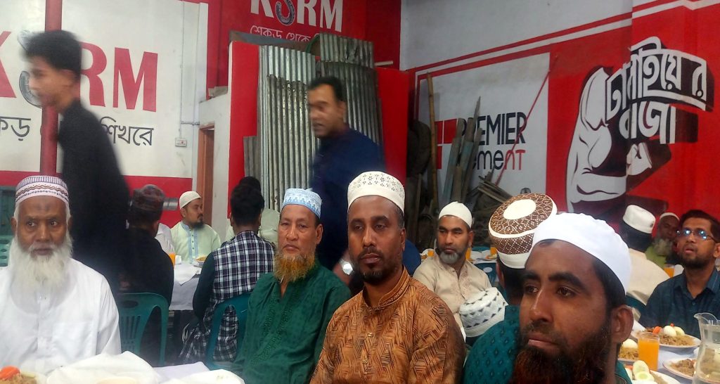 ৫ মার্চ বৃহস্পতিবার বিকেলে কেবি ট্রেডার্সের মালিক কামরুজ্জামান বাবু’র উদ্যোগে ইফতার মাহফিলে উপস্থিত ছিলেন ২ নং ওয়ার্ডের সাবেক কাউন্সিলর আলমগীর হোসেন, যুবদলের সিনিয়র যুগ্ম আহ্বায়ক রবিউল হোসেন তুহিন, জেলা স্বেচ্ছাসেবক দলের সাবেক সাধারণ সম্পাদক সরদার সাফায়েত হোসেন,  রিপোর্টার্স ক্লাব এর সাধারণ সম্পাদক উপাধ্যক্ষ রিয়াজুল ইসলাম বাচ্চু, ২ নং ওয়ার্ড বিএনপির সভাপতি মিন্টু গাজী, সাধারণ সম্পাদক মোঃ মাসুদ মিয়া, ব্যবসায়ী নাসির উদ্দিন মিয়াসহ এলাকার গণ্যমান্য ব্যক্তিবর্গ উপস্থিত ছিলেন।