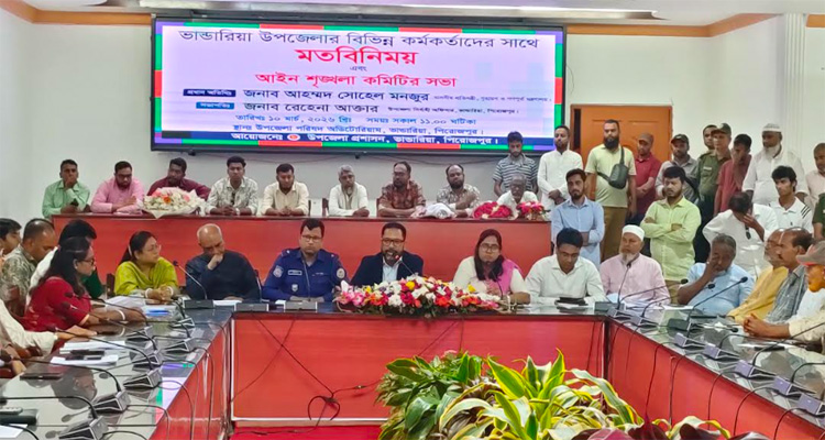 মঙ্গলবার দুপুরে ভা-ারিয়া উপজেলা পরিষদ অডিটোরিয়ামে অনুষ্ঠিত মাসিক আইনশৃঙ্খলা সভায় প্রধান অতিথির বক্তব্যে তিনি এসব কথা বলেন।