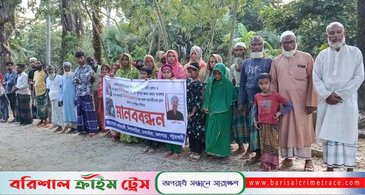 মানববন্ধনে বক্তব্য রাখেন সাবেক ইউপি সদস্য মোঃ মোজাম্মেল হোসেন, সহকারী শিক্ষক মোঃ নুরুল ইসলাম, স্থানীয় আবুল হোসেন সিকদার, ভুক্তভোগী পরিবারের নুর মোহাম্মদ ফকির ও বশির ফকিরসহ অনেকে। এ সময় ভুক্তভোগী পরিবার ও এলাকার শতাধিক মানুষ উপস্থিত ছিলেন।