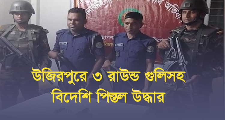 উজিরপুর প্রতিনিধিঃ বরিশাল জেলার উজিরপুর উপজেলার শোলক ইউনিয়নের দক্ষিন শোলক গ্রামে যৌথ বাহিনী অভিযান চালিয়ে একটি তালাবদ্ধ ঘরের ভিতর ট্রাংক থেকে ১ টি পিস্তল, ৩ রাউন্ড গুলি ও ১ টি ম্যাগজিন উদ্ধার করেছে।