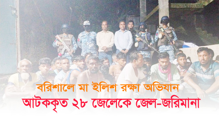 নিজস্ব প্রতিবেদক : মেঘনা নদীর বরিশালের হিজলা উপজেলায় অভিযান চালিয়ে, নিষেধাজ্ঞা অমান্য করে মা ইলিশ নিধনের অপরাধে আটক ২৮ জেলেকে বিভিন্ন মেয়াদে কারাদন্ড ও জরিমানা আদায় করা হয়েছে।