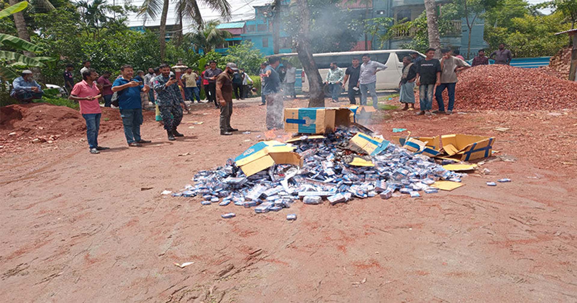 নিজস্ব প্রতিবেদক : বাংলাদেশ নৌবাহিনী এক বিশেষ অভিযান চালিয়ে বৃহস্পতিবার (২৪ জুলাই) সকালে ৫ লক্ষ টাকার অবৈধ সিগারেট উদ্ধার করেছে।বাংলাদেশ চাকরির বাজার বরগুনা শহরের চরকলোনী এলাকার মাহতাব মোল্লার বাড়ীর নিচতলায় একটি রুম থেকে সকাল ১০ টায় এক সিগারেট ব্যবসায়ীর কাছ থেকে ৫ লক্ষ টাকার অবৈধ সিগারেট জব্দসহ দুইজনকে আটক করেছে নৌবাহিনী।