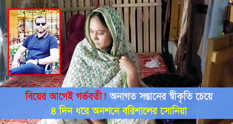 নিজস্ব প্রতিবেদক : বরিশাল থেকে শাহজাদপুরে এসে গর্ভের সন্তানের স্বীকৃতি চেয়ে ৪ দিন ধরে অনশন করছেন সৈয়দা সোনিয়া আকতার নামে এক নারী। ঘটনাটি ঘটেছে সিরাজগঞ্জের শাহজাদপুর উপজেলার আগ নুকালী গ্রামে আনছার আলীর বাড়ীতে। সৈয়দা সোনিয়া আকতার গর্ভের বাচ্চা ও স্ত্রীর স্বীকৃতির দাবিতে কাবিননামা হাতে নিয়ে অনশন শুরু করছেন। গত ২৫ অক্টোবর থেকে এ অনশন চালিয়ে যাচ্ছেন তিনি।