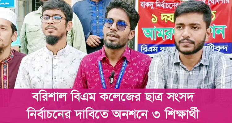 জানা গেছে, গত রবিবার দুপুর থেকে বুধবার (২৯ অক্টোবর) পর্যন্ত ব্রজমোহন (বিএম) কলেজের ছাত্র সংসদ (বাকসু) নির্বাচনের দাবিতে প্রশাসনিক ভবনের সামনে অনশন শুরু করেন এক শিক্ষার্থী। পরবর্তীতে তার সঙ্গে আরও দুই শিক্ষার্থী অনশনে যোগ দেন।