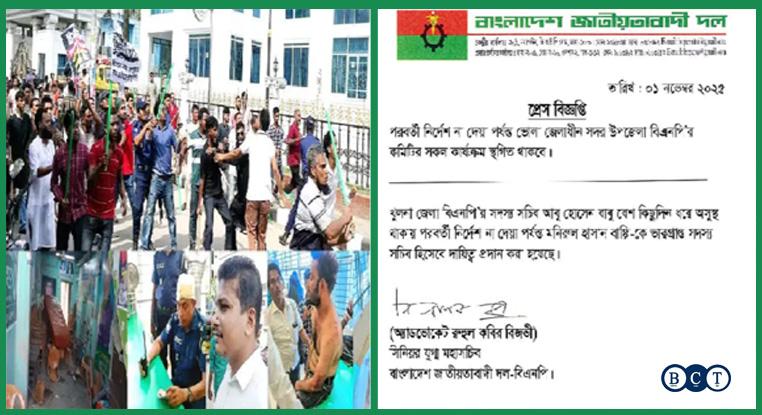 বিজ্ঞপ্তিতে বলা হয়, পরবর্তী নির্দেশ না দেওয়া পর্যন্ত ভোলা সদর উপজেলা বিএনপির বর্তমান কমিটির কার্যক্রম স্থগিত করা হলো।