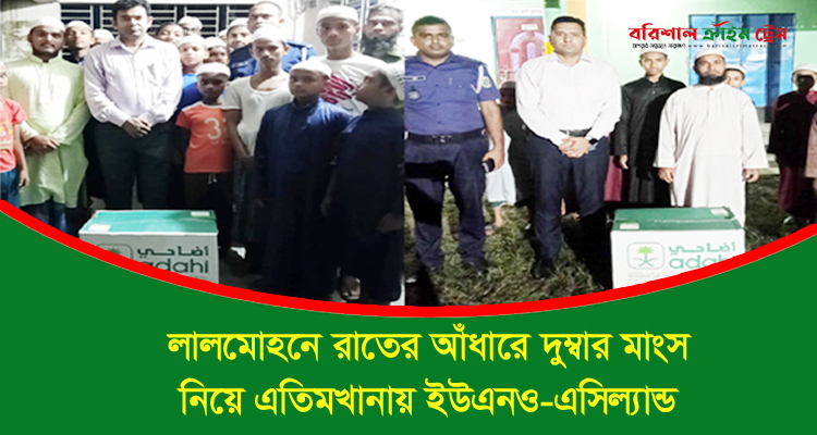লালমোহন (ভোলা) প্রতিনিধি: ভোলার লালমোহন উপজেলায় রাতের আঁধারে এতিমখানায় ঘুরে ঘুরে দুম্বার মাংস পৌঁছে দিয়েছেন উপজেলা নির্বাহী কর্মকর্তা (ইউএনও) মো. শাহ আজিজ এবং উপজেলা সহকারী কমিশনার (ভূমি) মো. রেজওয়ানুল হক। বুধবার রাতে উপজেলার বিভিন্ন ইউনিয়নে অবস্থিত এতিমখানাগুলোতে পৃথকভাবে সৌদি আরব সরকারের উপহারের ২৫ কার্টুন দুম্বার মাংস পৌঁছে দেন তারা। এ সময় উপজেলা প্রকল্প বাস্তবায়ন কর্মকর্তার কার্যালয়ের বিভিন্ন পর্যায়ের কর্মকর্তা এবং থানা পুলিশের সদস্যরা উপস্থিত ছিলেন।