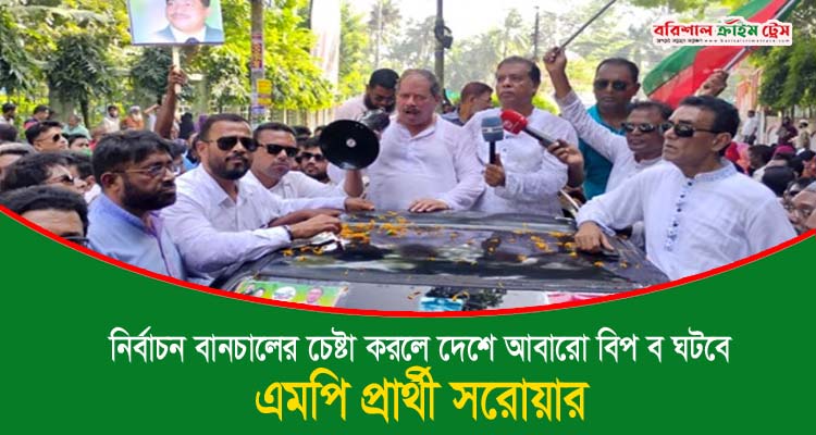 নিজস্ব প্রতিবেদক : বিএনপির চেয়ারপারসনের উপদেষ্টা ও বরিশাল-৫ (সদর) আসনের বিএনপি মনোনীত ধানের শীষ মার্কার প্রার্থী সাবেক হুইপ অ্যাডভোকেট মজিবর রহমান সরোয়ার বলেছেন-দেশের জনগণ ভোট দেয়ার জন্য অধীর আগ্রহে অপেক্ষা করছে। কিন্তু স্বৈরাচারের দোসররা নির্বাচন বানচালের ষড়যন্ত্রে লিপ্ত। স্বৈরাচারদের বলে দিতে চাই, নির্বাচন বানচালের চেষ্টা করলে বেগম খালেদা জিয়া ও তারেক রহমানের নেতৃত্বে দেশে আবারো বিপ্লব সৃষ্টি হবে।