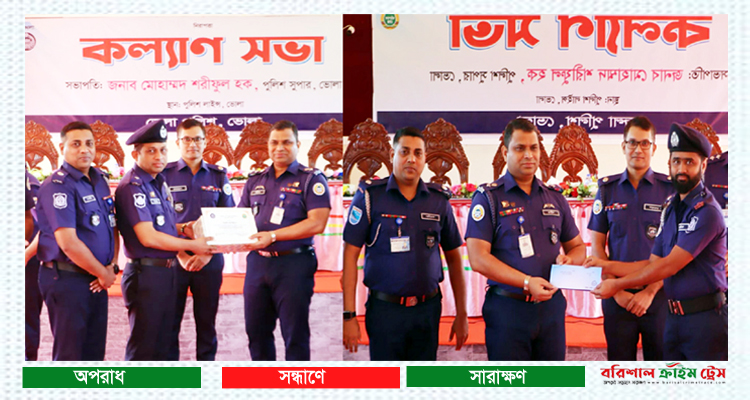 বুধবার দুপুরে ভোলা জেলা পুলিশ লাইন্সে অনুষ্ঠিত মাসিক কল্যাণ সভায় ওসি মো. সিরাজুল ইসলাম এবং এসআই মাইদুল ইসলামের হাতে সম্মাননা পুরস্কার ও সনদপত্র তুলে দেন পুলিশ সুপার মোহাম্মদ শরীফুল হক।