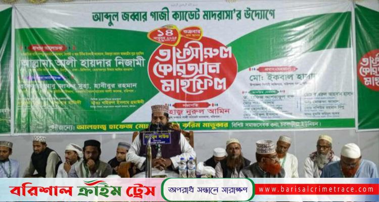 নিজস্ব প্রতিবেদক, বরিশাল: বরিশালের কাগাশুরা এলাকার বালুর মাঠে অবস্থিত আব্দুল জব্বার গাজী ক্যাডেট মাদরাসার উদ্যোগে আজ ১৪ নভেম্বর ২০২৫, শুক্রবার বাদ আসর অনুষ্ঠিত হতে যাচ্ছে একটি আয়োজনবহুল তাফসীরুল কোরআন মাহফিল।