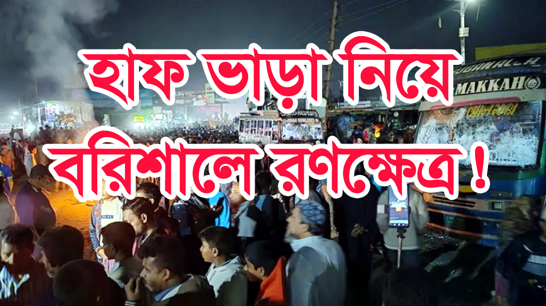 নিজস্ব প্রতিবেদক : বরিশালে হাফ ভাড়া না নেওয়াকে কেন্দ্র করে বাসশ্রমিকদের সঙ্গে সংঘর্ষে শিক্ষার্থীদের সংঘর্ষের ঘটনা ঘটেছে। এসময় অর্ধশতাধিক বাস ভাঙচুর করা হয়েছে বলে দাবি করেছেন শ্রমিকরা।
