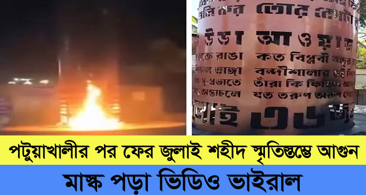 এর আগে বরগুনা, পিরোজপুর ও পটুয়াখালীতে জুলাই শহীদ স্মৃতিস্তম্ভে আগুন দেওয়ার ঘটনা ঘটে।