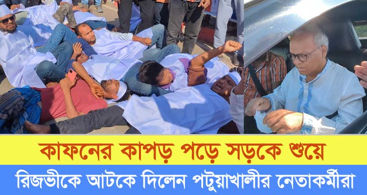 রুহুল কবির রিজভীর গাড়ি কাজিরহাট ব্রিজে পৌঁছালে নেতাকর্মীরা কাফনের কাপড় পরে সড়কে শুয়ে পড়েন। প্রায় আধঘণ্টা তারা সড়ক অবরোধ করে রাখেন।
