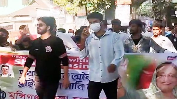 বিক্ষোভ চলাকালীন সেখানে দুইটি কুশপুতুলে অগ্নিসংযোগ করা হয় এবং বিভিন্ন স্লোগান দেয় বিক্ষোভকারীরা।