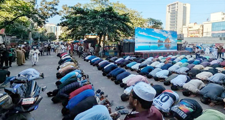সেজদায় পর দোয়া ও মোনাজাত করেন তারা। এ সময় জুলাই আন্দোলনে শহীদদের জন্য জান্নাতুল ফেরদৌস কামনা ও আহতদের সুস্থতার জন্য দোয়া কামনা করা হয়। এরপর আবারও স্লোগানে স্লোগানে হাসিনার কর্মকাণ্ডের প্রতিবাদ জানান ছাত্র-জনতা।