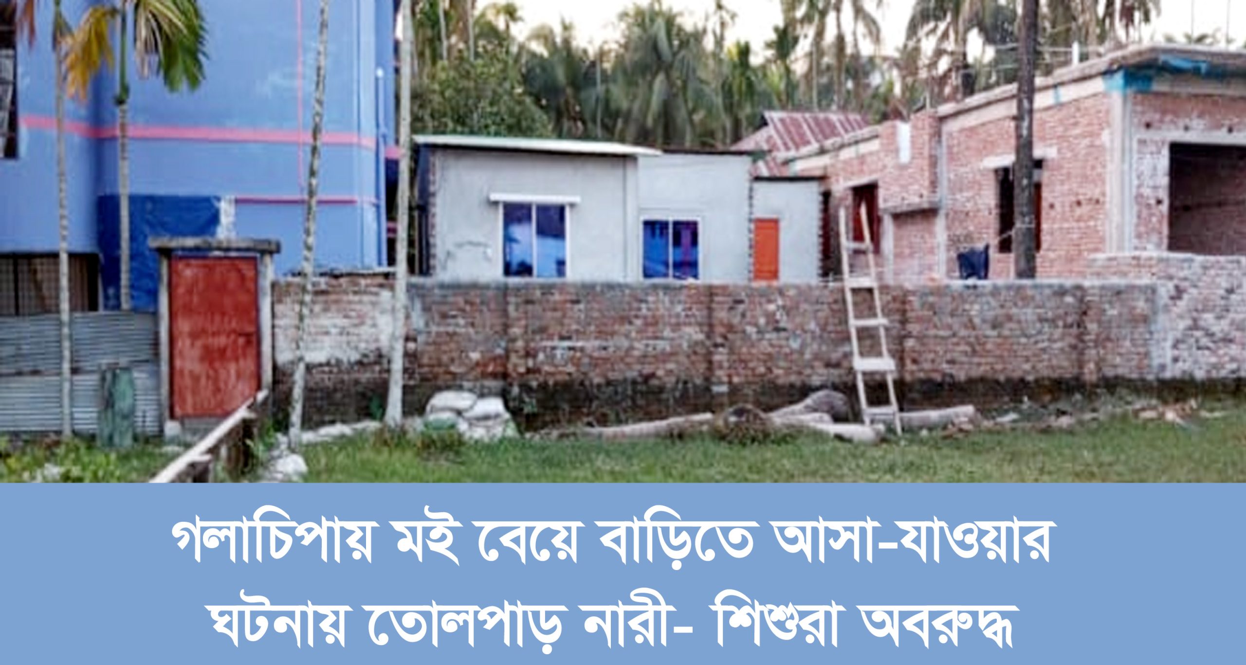 সঞ্জিব দাস, গলাচিপা (পটুয়াখালী) প্রতিনিধি। পটুয়াখালীর গলাচিপায় বাড়িতে প্রবেশের পথে পাকা দেওয়াল নির্মাণ করায় অবরুদ্ধ একটি পরিবার। মই বেয়ে বাড়িতে আসা-যাওয়ায় নারী ও শিশু অবরুদ্ধ। ঘটনাটি ঘটেছে পৌরসভার ৭নং ওয়ার্ডের ফিডার রোডস্থ অবসর বোর্ডিংয়ের পিছনে।