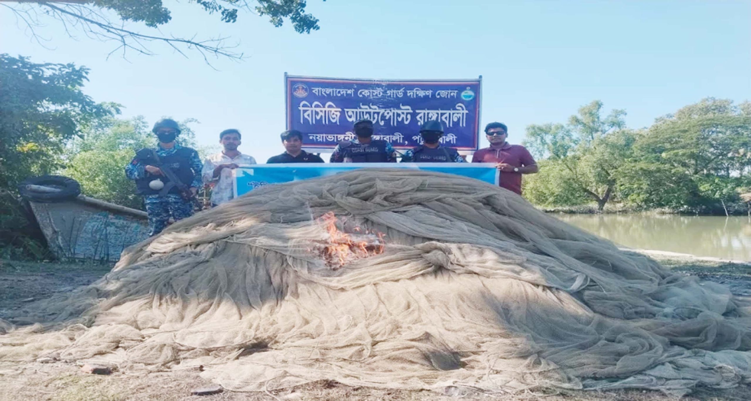 নিজস্ব প্রতিবেদক : পটুয়াখালীর রাঙ্গাবালীতে যৌথ অভিযানে ৫০ হাজার মিটার অবৈধ জাল জব্দ করে আগুনে পুড়িয়ে ধ্বংস করেছে উপজেলা মৎস্য বিভাগ ও কোস্টগার্ড।