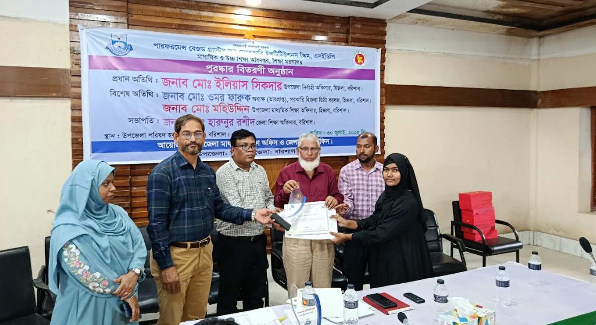 নিজস্ব প্রতিবেদক, বরিশাল: বরিশালের হিজলা উপজেলায় মাধ্যমিক শিক্ষা অফিস ও জেলা শিক্ষা অফিসের আয়োজনে "পারফরম্যান্স বেজড গ্র্যান্টস ফর সেকেন্ডারি ইন্সটিটিউট স্কিম,এসইডিপি" এর আওতায় ২০২২-২৩ শিক্ষা বছরে এস এস সি পরীক্ষায় ভালো ফলাফল অর্জন করা শিক্ষার্থীদের জন্য পুরস্কার বিতরণী অনুষ্ঠানের আয়োজন করা হয়।