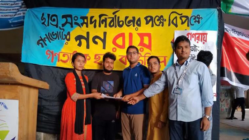 মঙ্গলবার (৩০ জুলাই) বিকেলে বিশ্ববিদ্যালয়ের গ্রাউন্ড ফ্লোরে এক আনুষ্ঠানিক আয়োজনে এ ফলাফল প্রকাশ করে গণতান্ত্রিক ছাত্র কাউন্সিল। আয়োজনে সভাপতিত্ব করেন ভূমিকা সরকার এবং সঞ্চালনায় ছিলেন মৃত্যুঞ্জয় রায়।