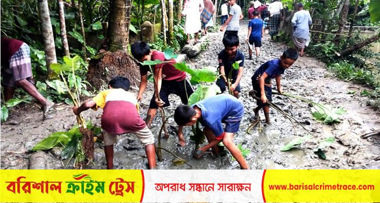 নিজস্ব প্রতিবেদক// ঝালকাঠির রাজাপুরের সাতুরিয়া ইউনিয়নের উত্তর তারাবুনিয়া এলাকার একটি কাঁচা রাস্তা পাকা করণের দাবিতে মানববন্ধন ও কচু গাছ লাগিয়ে প্রতিবাদ জানিয়েছে এলাকাবাসী।