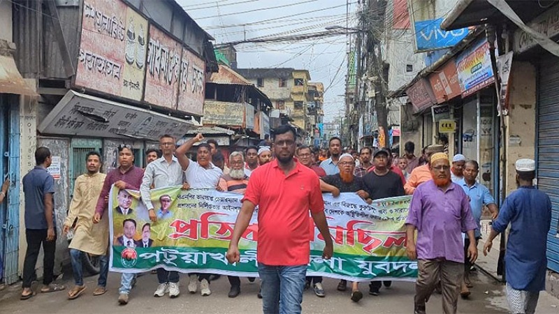 ১৫ জুলাই পটুয়াখালী বনানী মোড় এলাকা থেকে শুরু হয়ে শহরের প্রধান সড়ক প্রদক্ষিণ করে নিউমার্কেট এলাকায় গিয়ে সংক্ষিপ্ত সভা করেন নেতাকর্মীরা।