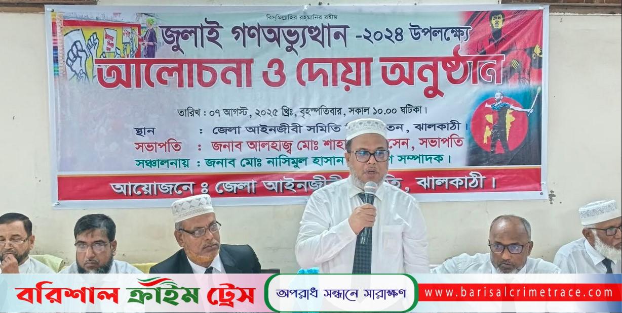 নিজস্ব প্রতিবেদক : জুলাই-আগস্টে ছাত্র-জনতার গণঅভ্যুত্থানের প্রথম বার্ষিকী উপলক্ষে ঝালকাঠি জেলা আইনজীবী সমিতিতে দোয়া ও আলোচনা সভা অনুষ্ঠিত হয়েছে। বৃহস্পতিবার (৭ আগস্ট) সকাল সাড়ে ১০টায় সমিতির হলরুমে অনুষ্ঠিত এ আয়োজনে সভাপতিত্ব করেন জেলা আইনজীবী সমিতির সভাপতি অ্যাড. মো. শাহাদাৎ হোসেন।