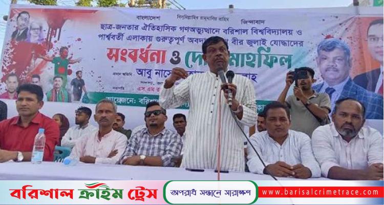 শনিবার (৯ আগস্ট) বিকেলে বরিশাল বিশ্ববিদ্যালয়ের (ববি) সামনে ছাত্র-জনতার ঐতিহাসিক গণঅভ্যুত্থানে বীর জুলাই যোদ্ধাদের সংবর্ধনা ও দোয়া মাহফিলে প্রধান অতিথির বক্তৃতায় তিনি এসব কথা বলেন। গণঅভ্যুত্থানে অবদান রাখা বরিশাল বিশ্ববিদ্যালয় শিক্ষার্থী ও পার্শ্ববর্তী এলাকার বাসিন্দাদের সংবর্ধনা দেন তিনি।
