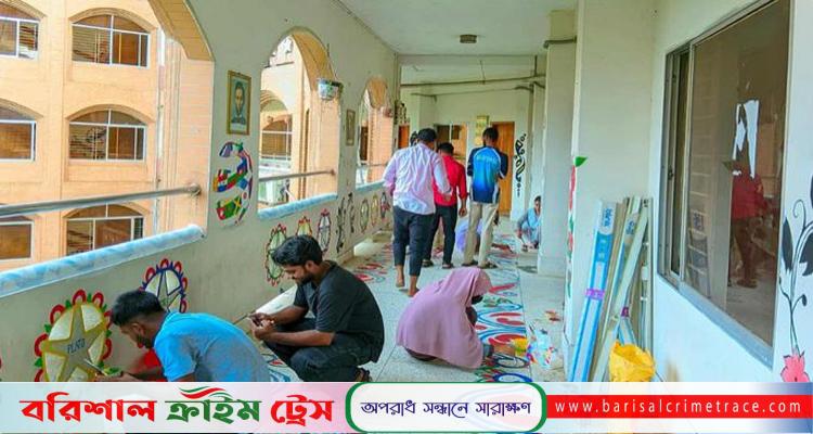 প্রতিটি কোণে লেগে থাকে বাহারি সাজের ছোঁয়া, রঙিন ফেস্টুন, আলপনা, ফুল ও আলোয় মুখরিত হয়ে ওঠে ক্যাম্পাস।