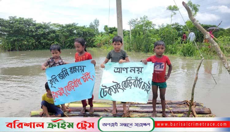 নিজস্ব প্রতিবেদক, বরিশাল: পটুয়াখালীর কলাপাড়ায় টেকসই বেড়িবাঁধ নির্মাণের দাবিতে কলাগাছের ভেলায় ভেসে সংবাদ সম্মেলন করেছে বানভাসী মানুষরা। সোমবার বেলা এগারোটায় উপজেলার ধানখালী ইউনিয়নের পশ্চিম লোন্দা গ্রামের টিয়াখালী নদী তীর এলাকায় এ সংবাদ সম্মেলন অনুষ্ঠিত হয়। এসময় ওই গ্রামের শতাধিক ভূক্তভোগী মানুষ উপস্থিত ছিলেন।