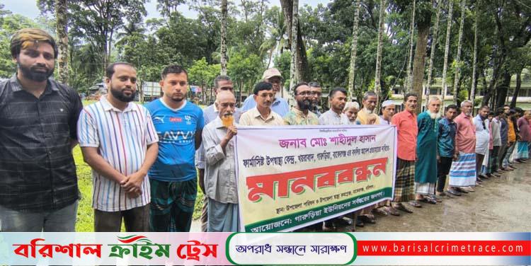 বাকেরগঞ্জে ফার্মাসিস্ট শহিদুল হাসানের বদলী আদেশ প্রত্যাহারের দাবিতে মানববন্ধন