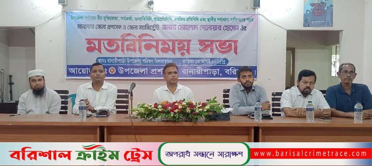 রাহাদ সুমন, বানারীপাড়া : বানারীপাড়ায় বীর মুক্তিযোদ্ধা, বিভিন্ন দপ্তরের সরকারি কর্মকর্তা, জনপ্রতিনিধি,, এনজিও প্রতিনিধি এবং স্থানীয় গন্যমান্য ব্যাক্তিবর্গের সঙ্গে বরিশাল জেলা প্রশাসক ও জেলা ম্যাজিস্ট্রেট মোহাম্মদ দেলোয়ার হোসেনের মতবিনিময় সভা অনুষ্ঠিত হয়েছে।