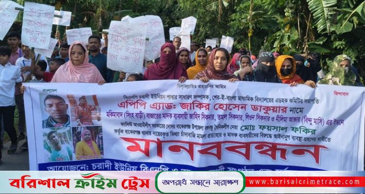 বক্তারা বলেন, উপজেলার চরাদি ইউনিয়ন বিএনপির সাধারণ সম্পাদক এ্যাডভোকেট জাকির হোসেন ডাকুয়া (এপিপি) একজন রাজনীতিবিদ ও সমাজসেবক। তিনি ইউনিয়নের কোন নোংরা রাজনীতির সাথে জড়িত নয়। বঙ্গবন্ধু সৈনিক লীগ নেতা ফয়সাল খান মকিমাবাদ বাজারে একটি অবৈধ কোচিং সেন্টার পরিচালনা করেন। সেই কোচিং সেন্টার চলাকালীন এলাকার চিহৃিত মাদক ব্যবসায়ী লিওন সিকদার ও তমাল সিকদার দুজনে মিলে সাগরকে মারধর করে। ওই ঘটনাকে পুঁজি করে গত ১২ আগস্ট ফয়সাল খান নিজের কোচিং সেন্টার ভাঙচুর করে এ্যাডভোকেট জাকির ডাকুয়ার নামে চাঁদাবাজির মিথ্যা নাটক সাজায়। পরদিন ১৩ আগস্ট সকালে ফয়সাল খান ও তার সহযোগী বিন্দু মাসি খ্যাত নীলিমা আক্তার কোচিং সেন্টারের শিক্ষার্থীদের ভুল বুঝিয়ে সড়ক অবরোধ করে এবং ১৪ আগস্ট থানায় একটি চাঁদাবাজি ও শ্লীলতাহানী মামলা দায়ের করে। চাঁদা চাওয়াতো দূরের কথা ওইদিন কোচিং সেন্টারে জাকির ডাকুয়া যায়নি। তারপরেও তার নামে একটি মিথ্যা মামলা দেয়া হয়েছে। বিক্ষোভকারীরা অবিলম্বে মিথ্যা মামলা প্রত্যাহারের দাবি জানান।