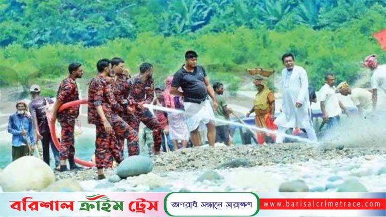 কোম্পানীগঞ্জ ফায়ার সার্ভিসের স্টেশন অফিসার আবু সালেহ মোহাম্মদ জাকারিয়া বলেন, প্রশাসনের নির্দেশে গর্ত ভরাটকারী শ্রমিকের গরম বালু থেকে প্রশান্তি ও বালু নিচের পাথর ভাসানোর জন্য পানি স্প্রে করা হয়েছে।