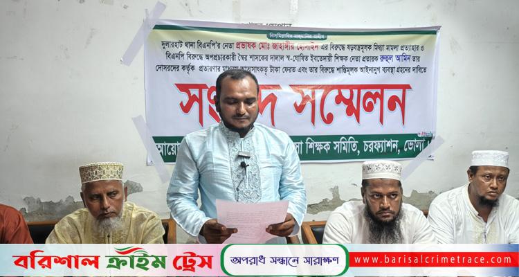 চরফ্যাশন(ভোলা) প্রতিনিধি// ভোলার চরফ্যাশন উপজেলার দুলারহাট থানা বিএনপি নেতা প্রভাষক মো.জাহাঙ্গীরের নামে মামলা প্রত্যাহারের দাবিতে সংবাদ সম্মেলন করা হয়েছে।