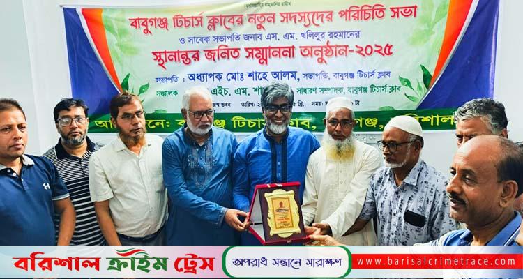 বাবুগঞ্জ টিচার্স ক্লাবের সাবেক সভাপতির স্থানান্তরজনিত সম্মাননা ও নতুন সদস্য বরণ অনুষ্ঠান সম্পন্ন