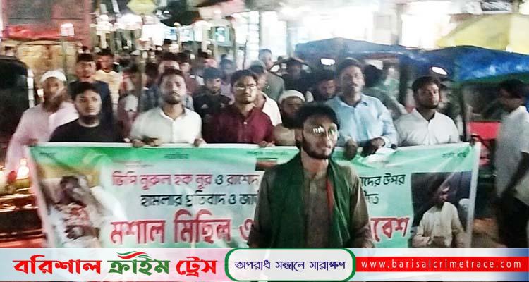 লালমোহন (ভোলা) প্রতিনিধি: গণঅধিকার পরিষদের সভাপতি নুরুল হক নুরসহ কেন্দ্রীয় নেতাদের ওপর হামলার প্রতিবাদে ভোলার লালমোহন উপজেলায় মশাল মিছিল করা হয়েছে। শনিবার সন্ধ্যায় উপজেলা গণঅধিকার পরিষদের আয়োজনে লালমোহন সরকারি মডেল মাধ্যমিক বিদ্যালয়ের সামনে থেকে মশাল মিছিলটি বের হয়ে পৌরশহরের প্রধান প্রধান সড়ক প্রদক্ষিণ করে চৌরাস্তার মোড়ে গিয়ে শেষ হয়।