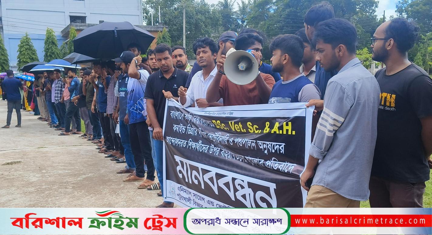 শিক্ষার্থীদের উপর হামলার প্রতিবাদে বরিশাল ক্যাম্পাসে শিক্ষার্থীদের মানববন্ধন