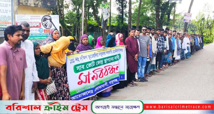 তারা আরও জানান, চরাঞ্চলের সাধারণ মানুষ, বৃদ্ধ ও নারীরা দীর্ঘ পথ পাড়ি দিয়ে অন্য এলাকায় গিয়ে ভোট দিতে পারেন না। এতে ভোটাধিকার থেকে বঞ্চিত হচ্ছেন তারা। স্থানীয় সমাজসেবক আব্দুল হাকিম বিশ্বাসের সভাপতিত্বে ছাত্রদল নেতা বিপ্লব মিস্ত্রির সঞ্চালনায় আয়োজিত মানববন্ধনে বক্তব্য রাখেন মোঃ রাহাত বিশ্বাস, মোহাম্মদ নুরুল হক চৌকিদার, মোঃ রফিক সরদার, মোঃ রিয়াজ হাওলাদার, মোসাম্মৎ মারুফা আক্তার, মোসাম্মৎ সোনা বড় বেগম, মোহাম্মদ আলাউদ্দিন হাওলাদার, আব্দুর রহমান সিকদার, আব্দুল হাকিম ঘরামী, মুজাহার হাওলাদার, মোঃ শহিদুল ইসলাম হাওলাদার, শাজাহান সরদার, জাকির হোসেন মুন্সি প্রমূখ।
