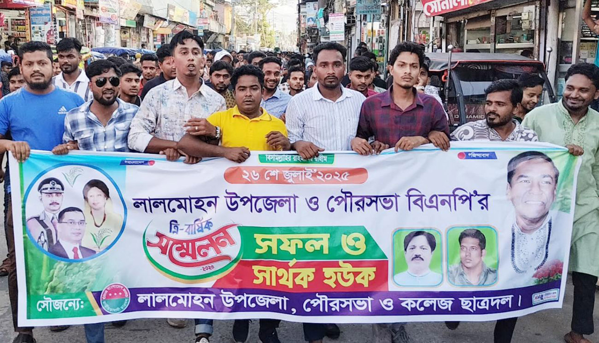 নিজস্ব প্রতিবেদক, বরিশাল: আগামী ২৬ শে জুলাই ভোলার লালমোহন উপজেলা ও পৌরসভা বিএনপির সম্মেলন উপলক্ষে আনন্দ মিছিল করেছেন ছাত্রদলের নেতাকর্মীরা। রোববার বিকেলে পৌরশহরে অবস্থিত বিএনপির স্থায়ী কমিটির সদস্য ও ভোলা-৩ আসনের সাবেক সংসদ সদস্য মেজর (অব.) হাফিজ উদ্দিন আহমেদের (বীরবিক্রম) বাসভবনের সামনে থেকে উপজেলা, পৌরসভা এবং কলেজ ছাত্রদলের উদ্যোগে মিছিলটি বের হয়ে হসপিটাল গেটে গিয়ে শেষ হয়।