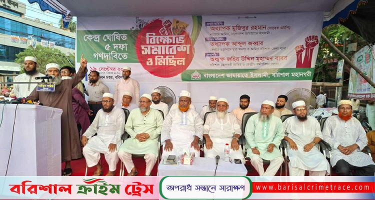 শুক্রবার (১৯ সেপ্টেম্বর) বিকেলে নগরের ফজলুল হক অ্যাভিনিউতে কেন্দ্র ঘোষিত ৫ দফা দাবিতে বরিশাল মহানগর জামায়াতের বিক্ষোভ সমাবেশে প্রধান অতিথির বক্তব্যে এসব কথা বলেন জামায়াতের কেন্দ্রীয় নায়েবে আমির ও সাবেক এমপি অধ্যাপক মুজিবুর রহমান।