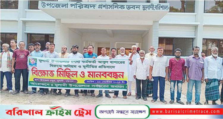 আজ রোববার (২৮ সেপ্টেম্বর) বেলা ১১টায় মুলাদী সদরে আবুল বাশারের বিরুদ্ধে অনিয়ম ও দুর্নীতির অভিযোগ তুলে বিক্ষোভ মিছিল ও উপজেলা চত্বরে মানববন্ধন করেন জেলেরা। মানববন্ধন শেষে মৎস্য কর্মকর্তার অপসারণের দাবিতে উপজেলা নির্বাহী কর্মকর্তার (ইউএনও) কাছে স্মারকলিপি দেন জেলেরা।
