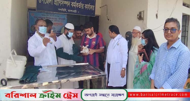 নিজস্ব প্রতিবেদক, বরিশাল: ঝালকাঠির নলছিটিতে শতাধিক কুকুর-বিড়ালকে বিনামূল্যে জলাতঙ্কের টিকা দেয়া হয়েছে। মঙ্গলবার (৩০ সেপ্টেম্বর) সকাল ১০ টায় নলছিটি উপজেলা প্রানী সম্পদ দপ্তর ও ভেটেরিনারি হাসপাতালের আয়োজনে এ টিকা দেওয়া হয়।