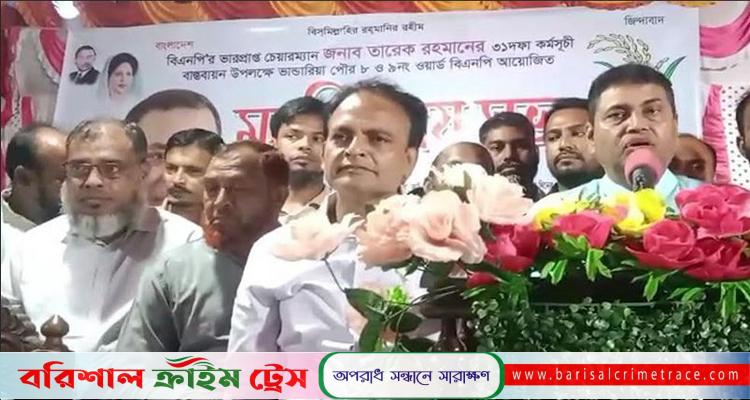 বৃহস্পতিবার বিকেলে পিরোজপুরের ভা-ারিয়া পৌরসভার ৮ ও ৯ নম্বর ওয়ার্ড বিএনপির উদ্যোগে দলের ভারপ্রাপ্ত চেয়ারম্যান জনাব তারেক রহমান ঘোষিত ৩১ দফা কর্মসূচি বাস্তবায়নের লক্ষ্যে এক মতবিনিময় সভায় প্রধান অতিথির বক্তব্যে তিনি এসব কথা বলেন।