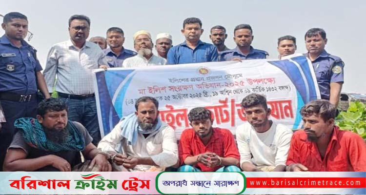 অভিযানে লালমোহন উপজেলা মৎস্য কর্মকর্তা আলী আহমদ আখন্দ, সামুদ্রিক মৎস্য কর্মকর্তা মো. সাইদুর রহমান, ক্ষেত্র সহকারী মো. নেছার উদ্দিন ও সাইফুল ইসলাম সোহাগসহ থানা পুলিশের সদস্যরা উপস্থিত ছিলেন।