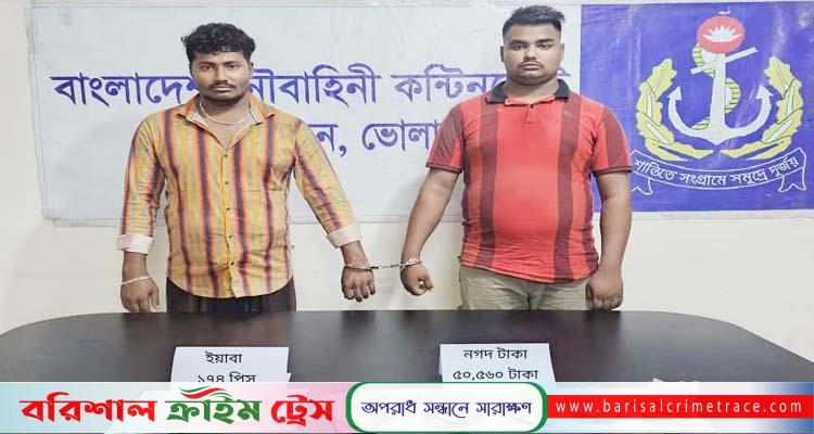 একই সময় তাদের কাছ থেকে মাদক কারবারের নগদ ৫০ হাজার ৫৬০ টাকাও উদ্ধার করা হয়। পরে তাদের লালমোহন থানায় হস্তান্তর করা হয়। এ বিষয়ে লালমোহন থানার ওসি মো. সিরাজুল ইসলাম বলেন, বাংলাদেশ নৌবাহিনী ও মাদক দ্রব্য নিয়ন্ত্রণ অধিদফতরের যৌথ অভিযানে দুই মাদক ব্যবসায়ীকে আটকের পর থানায় হস্তান্তর করা হয়েছে। আটককৃতদের বিরুদ্ধে মাদক দ্রব্য নিয়ন্ত্রণ আইনে মামলা দায়েরের পর সোমবার দুপুরে তাদের আদালতে পাঠানো হয়েছে।