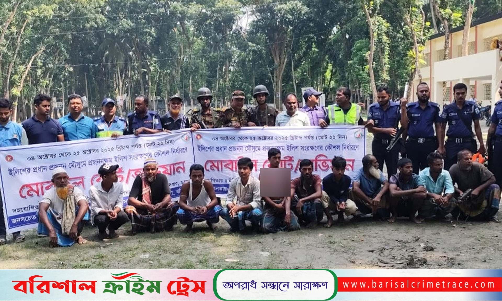 আজ মঙ্গলবার (১৪ অক্টোবর) সকালে হিজলার মেঘনা বাজার, দুর্গাপুর লঞ্চঘাট ও হরিনাথপুরের বদর টুনি এলাকায় এই অভিযান পরিচালনা করা হয়। মা ইলিশ আহরণের নিষিদ্ধ সময়েও নদীতে মাছ ধরার অভিযোগে এই অভিযান চালানো হয়।