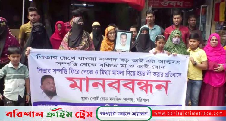 আরিফ হোসেন// বরিশালে পিতার রেখে যাওয়া সম্পদ বড় ভাইয়ের একার আত্মসাৎ, মাকে ভরণ-পোষণ না দিয়ে ঘর থেকে নামিয়ে দেওয়া এবং ভাইদের বিরুদ্ধে মিথ্যা মামলা দিয়ে হয়রানির প্রতিবাদে ও সম্পত্তি থেকে বঞ্চিত মা ও ভাই-বোন পিতার সম্পত্তি ফিরে পাওয়ার দাবি জানিয়ে মানববন্ধনের পাশাপাশি অনশন করেন ভুক্তভোগী মা সহ ১২ সন্তান।