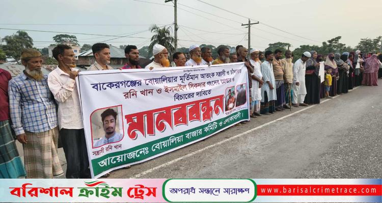 মানববন্ধনে বক্তারা বলেন, বাকেরগঞ্জ উপজেলার রঙ্গশ্রী ইউনিয়নের বোয়ালিয়া গ্রামের বাবুল খানের পুত্র কিশোর গ্যাং লিডার রনি খান ও তার সহযোগী রিপন সিকদারের পুত্র ইসমাইল সিকদার এলাকার মূর্তিমান আতংক। গত বুধবার (১৫ অক্টোবর) রাতে নিজ বাড়ীতে যাবার পথে উপজেলার রঙ্গশ্রী ইউনিয়ন স্বেচ্ছাসেবক দলের সাবেক আহবায়ক তুহিন আকনকে হত্যার উদ্দেশ্যে কিশোর সন্ত্রাসী ও চাঁদাবাজ রনি খান ও ইসমাইল সিকদারসহ ১০-১২ জন হামলা করে মারধর ও রক্তাক্ত জখম করে। এ হত্যা চেষ্টার ঘটনায় আহত তুহিন বাদি হয়ে বৃহস্পতিবার বাকেরগঞ্জ থানায় একটি মামলা দায়ের করে। স্বেচ্ছাসেবক দল নেতাকে হত্যা চেষ্টার দুইদিন পেরিয়ে গেলেও পুলিশ এখনো পর্যন্ত কোন আসামিকে গ্রেফতার করতে করেনি। উল্টো মিথ্যা ঘটনা সাজিয়ে আহত তুহিনের নামে আরেকটি মামলা দায়ের নিয়েছে।