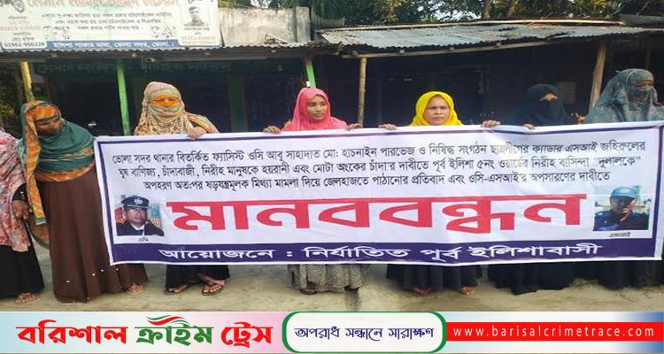 স্থানীয়রা জানান, মামলার আসামিরা জোর পূ্র্বক ঘর ভেঙ্গে নিয়ে যায়, বাদা দিলে তাদের উপর হামলা করে দুলাল বাহিনী, পরে দুলাল সহ বাকি আসামিদেরকে বাঁচাতে দুলালের স্ত্রী ভোলা সদর থানার ওসি ও এস আই জহিরুলের বিরুদ্ধে যে মানববন্ধন করছে তা সম্পূর্ণ ভিত্তিহীন।
