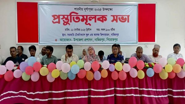 পিরোজপুর প্রতিনিধি: পিরোজপুরের নাজিরপুরে শারদীয় দূর্গা পূজা উপলক্ষে উপজেলা নিরাপত্তা ও আইন শৃঙ্খলা নিয়ন্ত্রণ বিষয়ক প্রস্তুতি মূলক সভা অনুষ্ঠিত হয়েছে। আজ সোমবার (২২ সেপ্টেম্বর) সকাল ১১টায় নাজিরপুর সরকারি টেকনিক্যাল